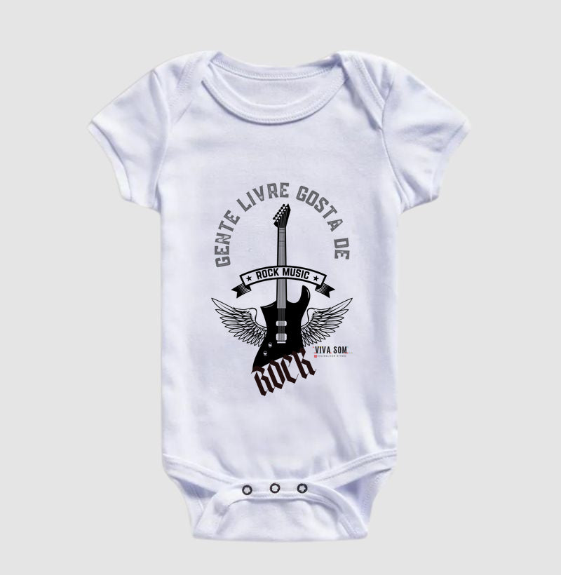 Estampa exclusiva com guitarra e asas, símbolo da liberdade