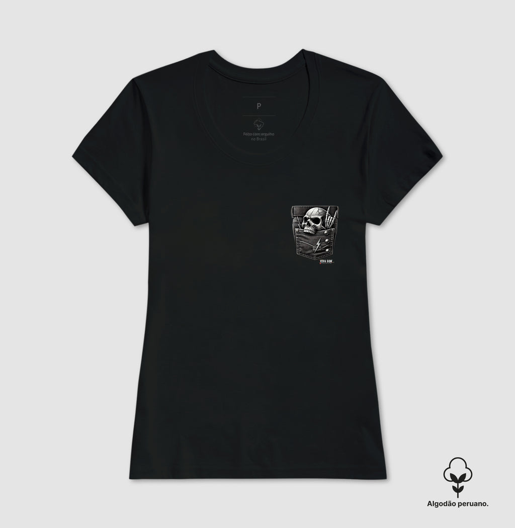 💀🎸 Tem algo no seu bolso... é o rock querendo sair!Essa caveira não descansa: faz o símbolo do rock com os dedos ossudos e carrega o som na alma.Discreta? Nunca.Até no bolso, o rock se impõe. 🤘🔥