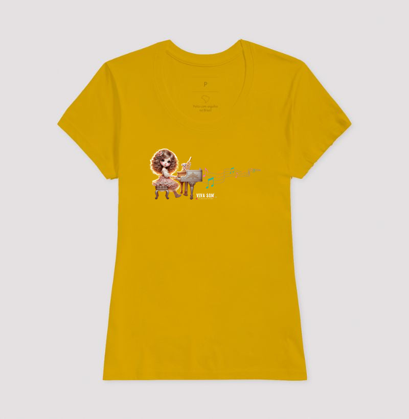 Boneca Pianista -100% Algodão Clássica e Baby Look