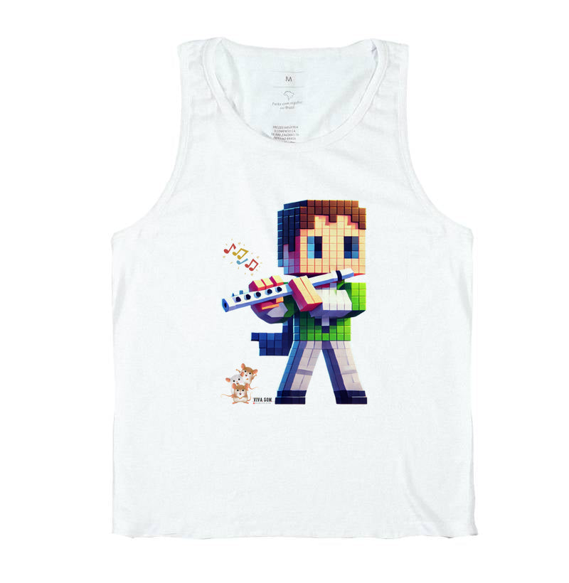 Com um flautista em pixel art e seu fiel ratinho, essa regata traz o toque mágico do clássico conto para o seu estilo! 🐭✨ Perfeita para quem ama música, histórias e um look cheio de personalidade! 🎶👕