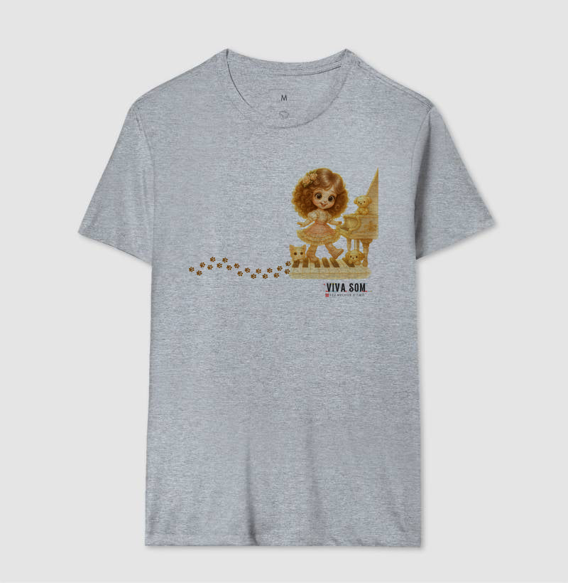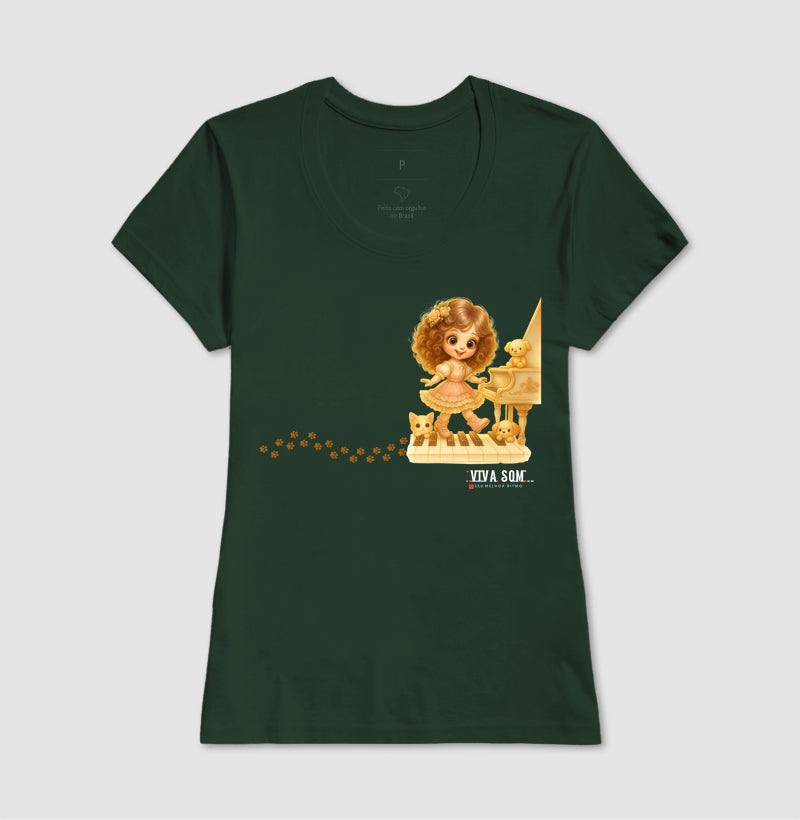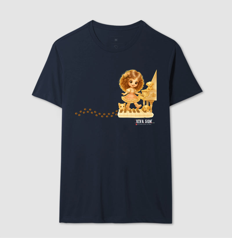Gato, cão e piano - 100% Algodão Clássica e Baby Look