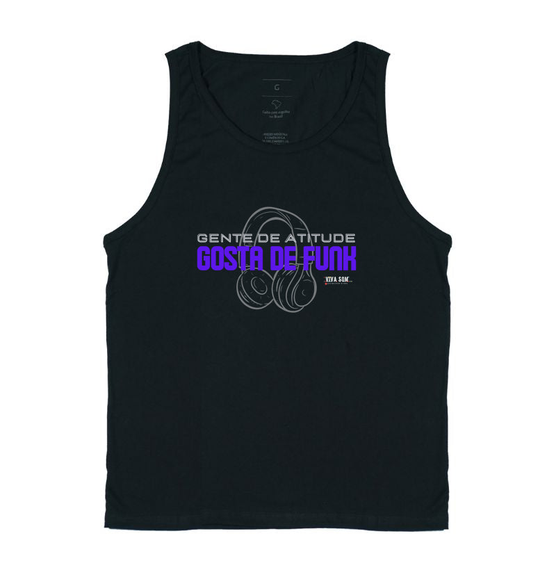 Estampa: “Gente de Atitude Gosta de Funk” com fone de ouvido estilizado