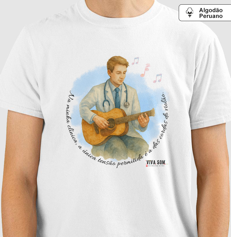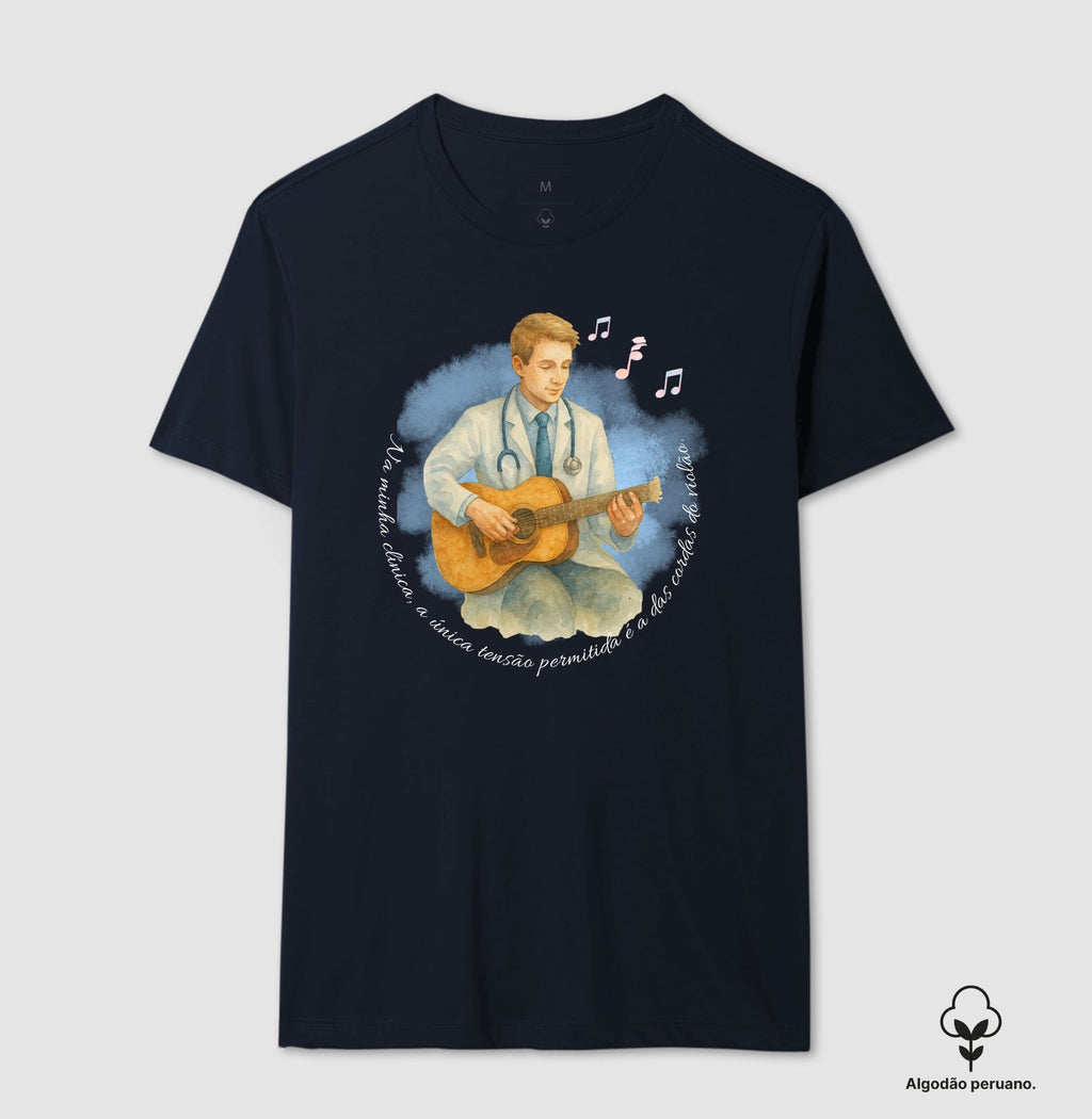 Médico: tensão só das cordas do violão - Camiseta e Baby Look Algodão Peruano