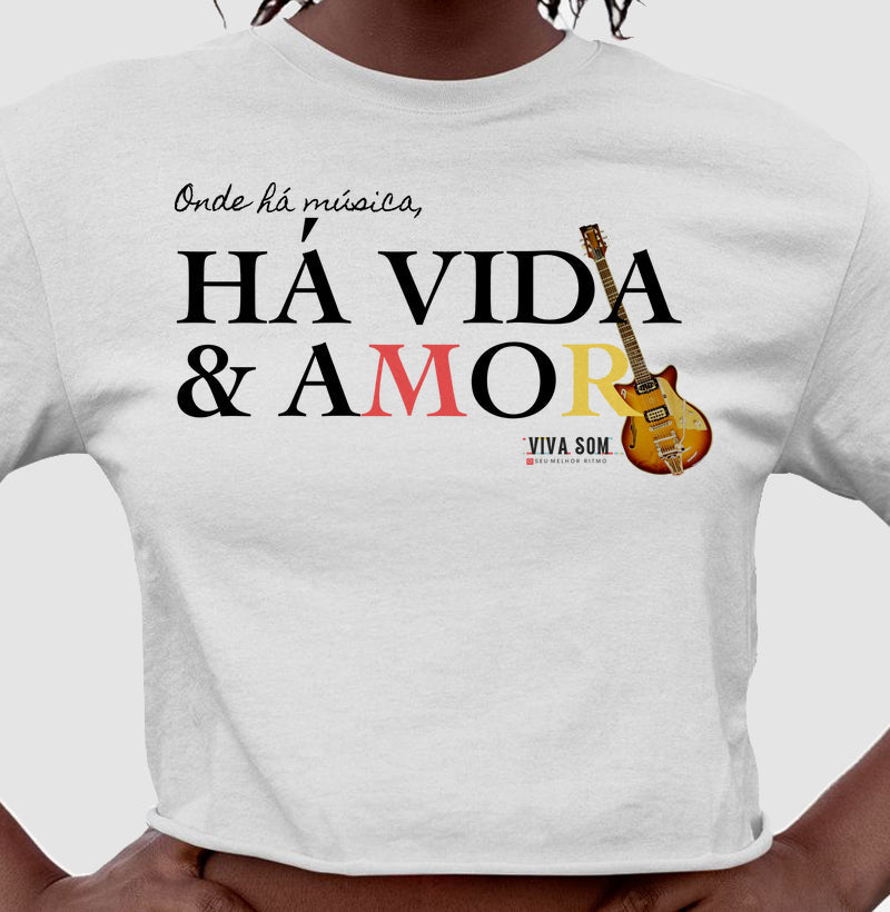 Viva a vida com ritmo, paixão e harmonia! Nosso cropped com a mensagem "Música, Vida e Amor" celebra a essência desses três pilares que tornam o mundo mais bonito. Vista a energia da música, o poder da vida e o calor do amor, e espalhe essa vibração positiva por onde for! ✨💖
