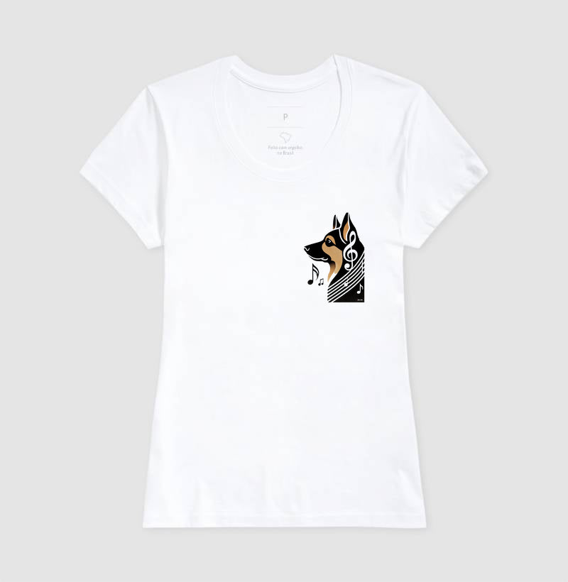 Pastor Alemão Musical - 100% Algodão Clássica e Baby Look