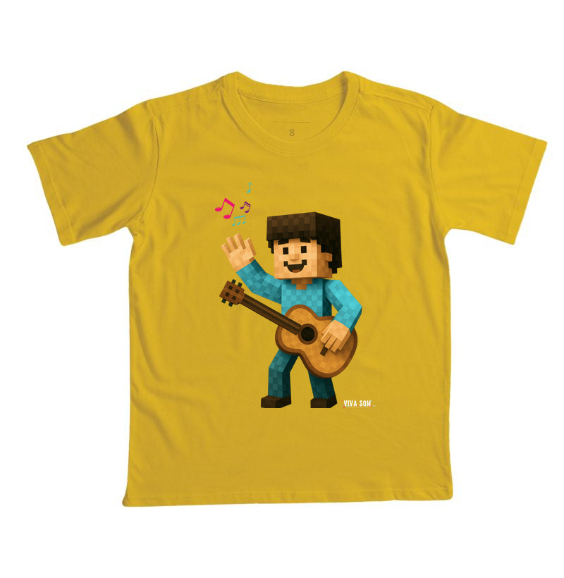 Essa camiseta une o charme pixelado do Minecraft com a alegria da música — pra quem já nasceu pra tocar corações com ritmo e criatividade. Viva Som desde cedo! 🎶✨